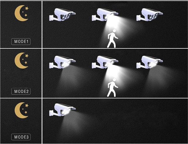 La caméra offre trois modes d'éclairage différents : éclairage complet à la détection de mouvement, mode économie d'énergie et luminosité continue. Ce produit polyvalent est conçu pour répondre à tous vos besoins d'éclairage de surveillance.