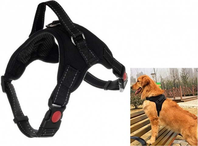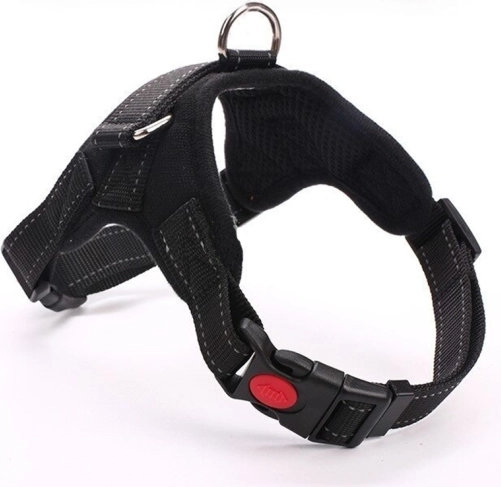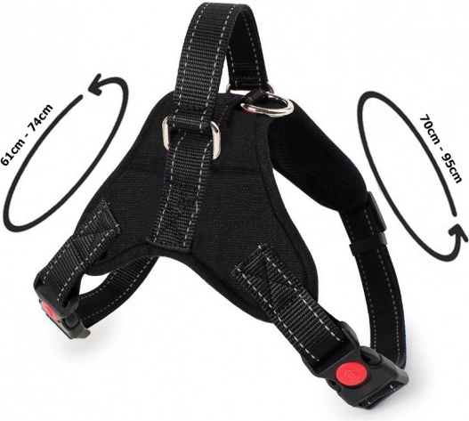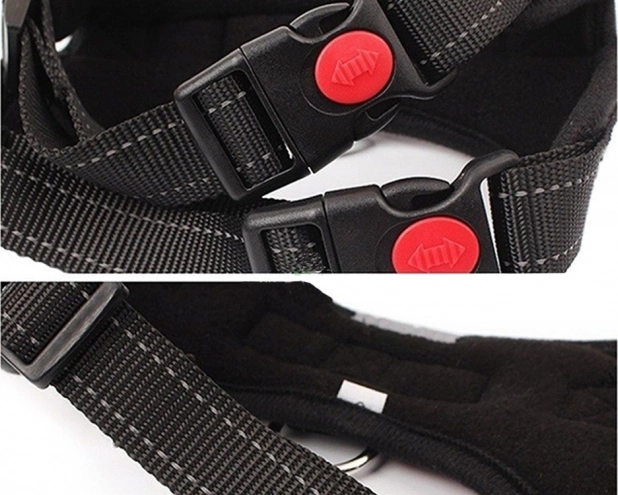 Anneau en D métallique robuste pour la laisse, poignée supérieure pratique et boucles avec verrou de sécurité contre l’ouverture accidentelle garantissent une maîtrise sûre du chien dans toutes les conditions.