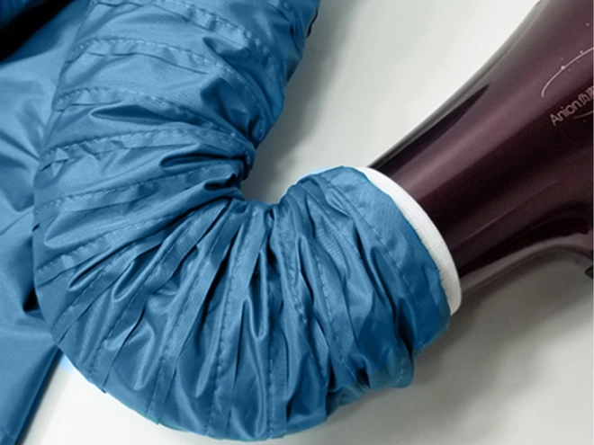 Le manteau bien fermé avec apport d’air chaud depuis le sèche‑cheveux réduit le temps de séchage et minimise le désordre à la maison.