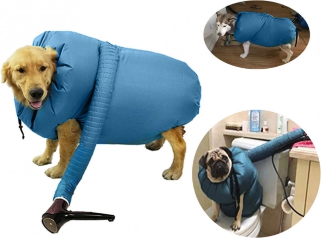 La chaleur circule uniformément sur tout le corps, le pelage sèche en profondeur et le risque de refroidissement diminue. Le matériau est léger, facile à nettoyer et l’utilisation est intuitive : enfilez le manteau, serrez, insérez le sèche‑cheveux dans la manche et séchez.