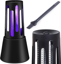 Piège UV efficace pour moustiques, mouches et autres insectes volants, pour la maison et les terrasses. Il émet une lumière UV attractive et élimine les insectes au contact de la grille électrique. L’appareil fonctionne sans produits chimiques ni odeurs, offre un fonctionnement silencieux, une faible consommation de 5 W et s’alimente via USB. Le module amovible et la brosse de nettoyage garantissent un entretien facile.