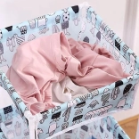 Le panier est disponible en plusieurs couleurs et motifs : motif crème, rose avec des flamants roses, et bleu avec des cactus.