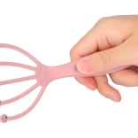 La combinaison de plastique et de métal garantit une longue durée de vie et une grande fiabilité. L'appareil de massage est équipé de cinq bras flexibles se terminant par des billes métalliques. Cette conception permet une application facile des produits de soin sur le cuir chevelu.