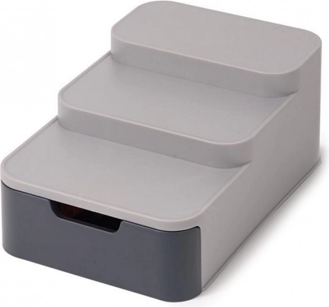 Ce range-épices compact exploite efficacement l’espace de votre garde-manger ou placard. Trois niveaux offrent une meilleure visibilité sur les bocaux et boîtes placés au fond, tandis que le tiroir coulissant accueille sachets, tubes et autres petits objets. Le plastique gris résistant se nettoie facilement et s’intègre parfaitement dans une cuisine moderne.