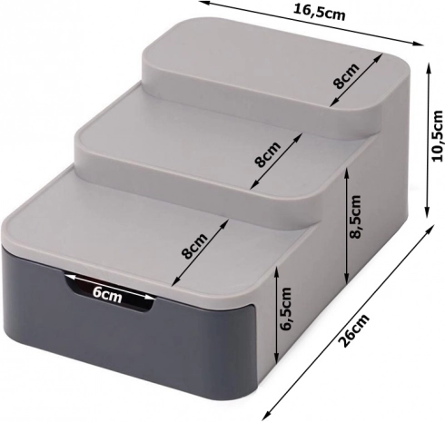 Le tiroir intégré accueille sachets, tubes, recharges d’épices ou petits articles de beauté et garde tout bien organisé au même endroit.