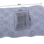 Le tapis massant pour douche et baignoire est idéal pour l’hygiène quotidienne et la détente. Les picots en silicone/vinyle denses éliminent en douceur les peaux mortes, nettoient même les zones difficiles d’accès entre les orteils et massent agréablement la voûte plantaire. Les ventouses antidérapantes sur toute la surface garantissent stabilité et sécurité même sur sol mouillé.