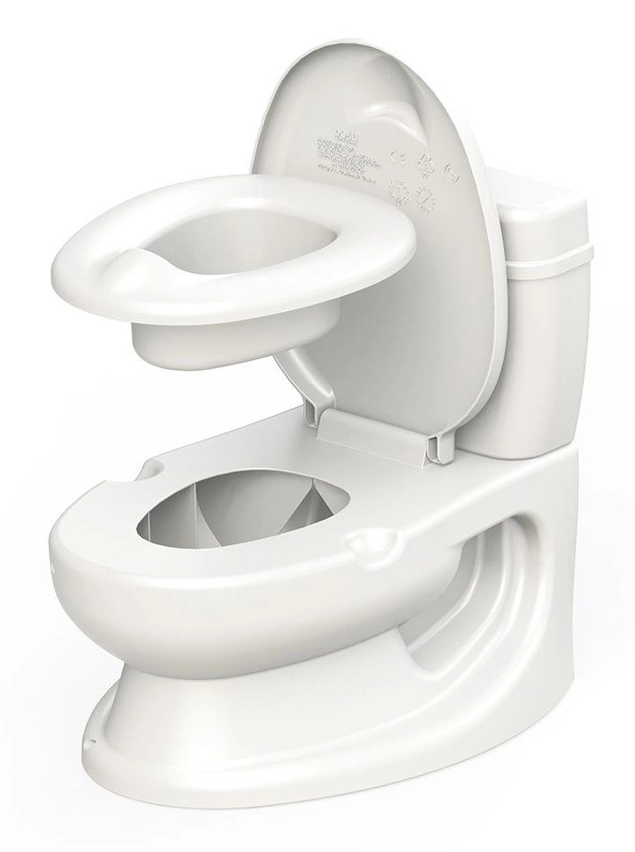 Ce pot réaliste en forme de toilette aide les enfants à passer des couches aux toilettes de manière ludique et motivante. Il offre un son de chasse d’eau, un porte-papier toilette, un bol amovible pour un nettoyage facile et une base antidérapante pour une utilisation en toute sécurité.