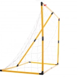 Le cadre jaune avec des raccords solides et un filet tendu supporte un entraînement intensif à la maison comme au jardin.