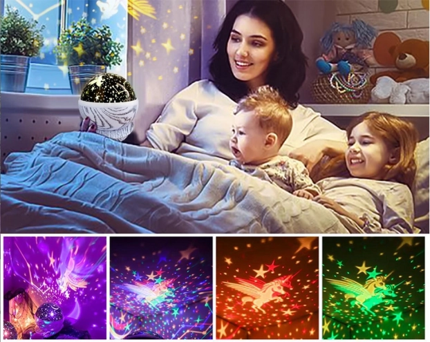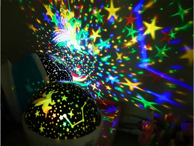 Ce projecteur élégant transforme le plafond et les murs en un magique ciel étoilé avec la lune. Grâce à la rotation à 360°, il crée un effet dynamique et apaisant, aidant enfants et adultes à s’endormir et à se détendre plus facilement. C’est à la fois une superbe décoration et une veilleuse pratique.