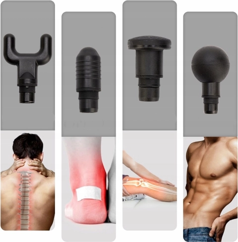 Le coffret inclut 4 embouts pour des soins ciblés : boule pour un usage polyvalent, plat pour les grands groupes musculaires, fourche pour la zone de la colonne et de la nuque, et pointu (balle) pour les points gâchettes et les tissus profonds. 6 niveaux de vitesse (jusqu’à 3600 tr/min) permettent d’adapter l’intensité, d’une détente douce à un massage profond.