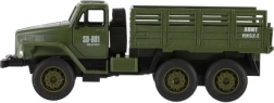 Finition militaire verte, benne ouverte et pneus imposants pour encourager des scénarios d’aventure et la fantaisie des enfants.