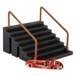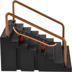 Ce set réaliste de fingerboard apporte un « mini skatepark » compact directement sur votre table. Des escaliers solides avec rampe et un skateboard de doigt de qualité permettent de s’entraîner aux slides, grinds et figures avec sauts dans un espace réduit.
