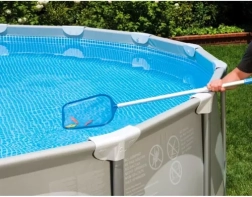 Large épuisette à maille fine qui élimine efficacement les impuretés en surface et garde l’eau propre et limpide.