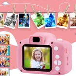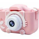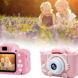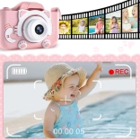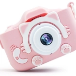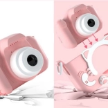 L'appareil photo a un design rose en forme de chat avec des oreilles et des pattes, qui captivera instantanément les enfants.